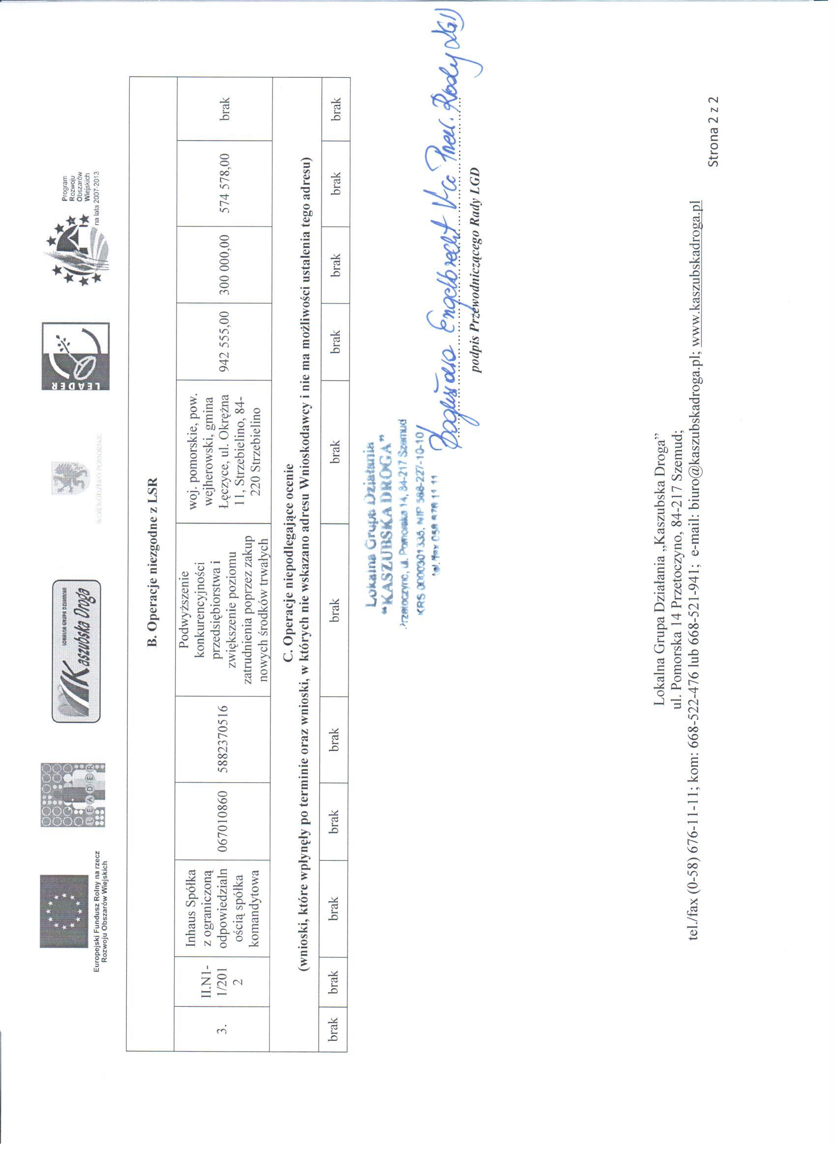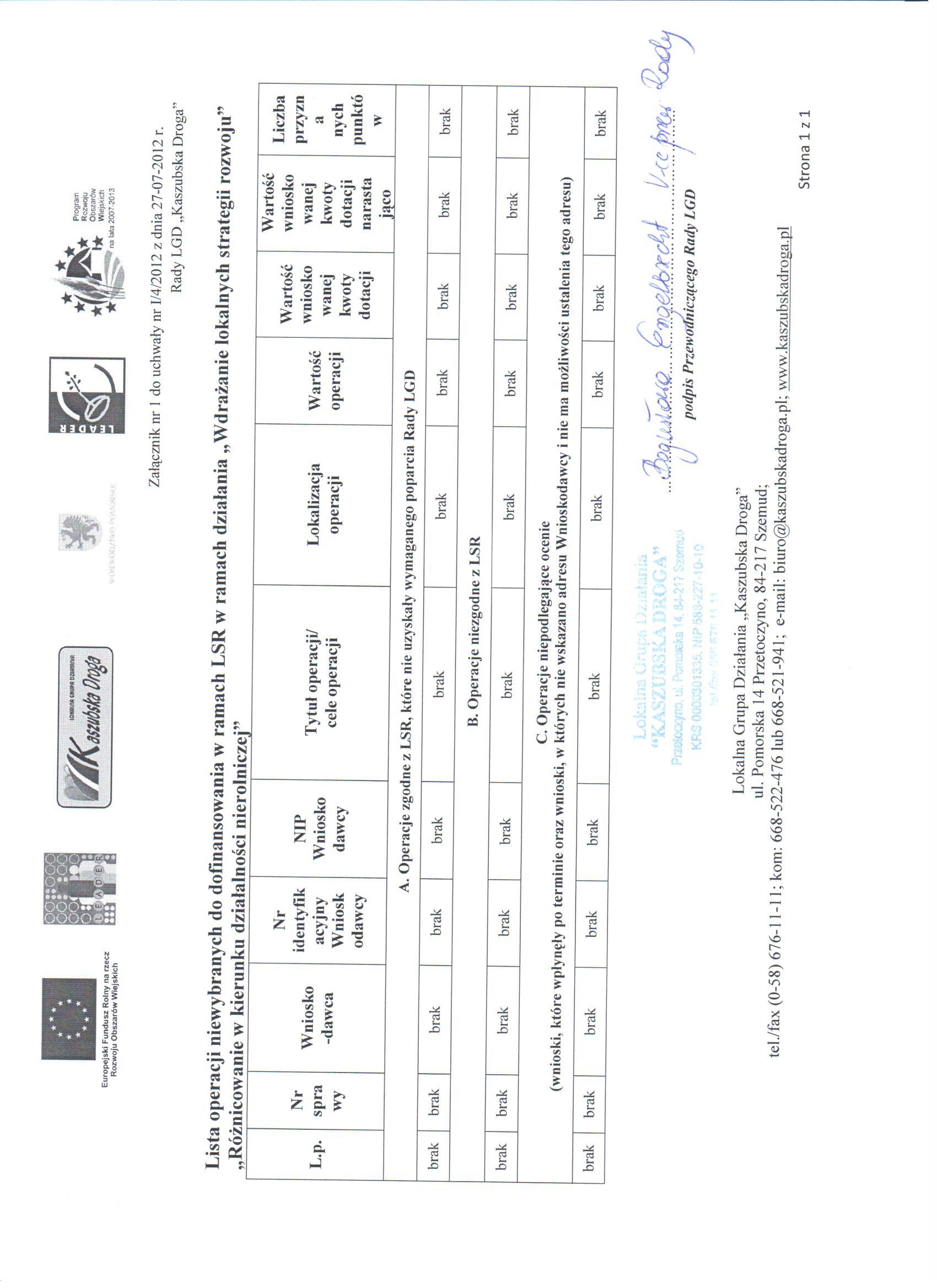 Lista projektów niewybranych do dofinansowania (pliki w formacie pdf):