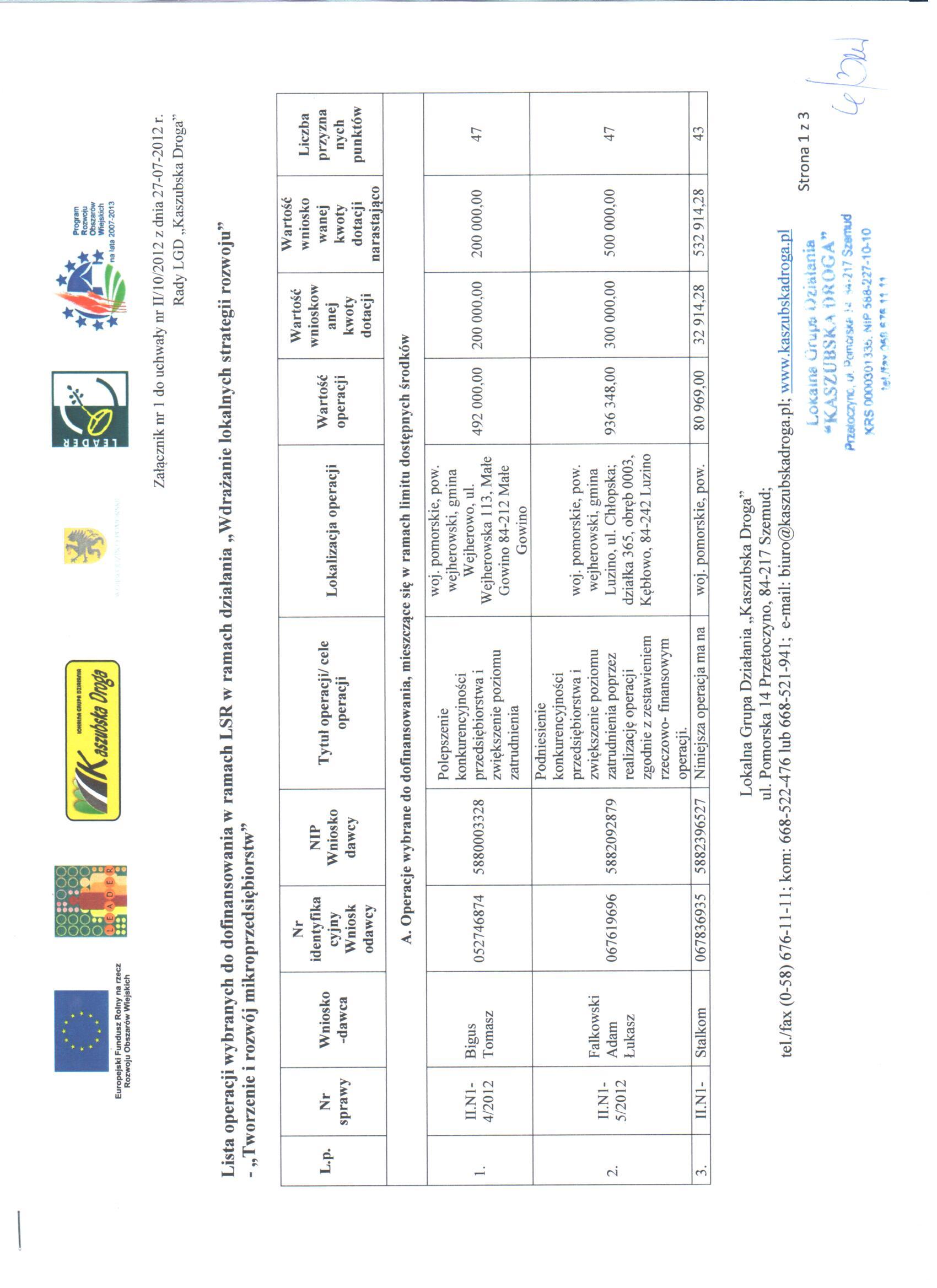 Lista projektów wybranych do dofinansowania (pliki w formacie jpg):